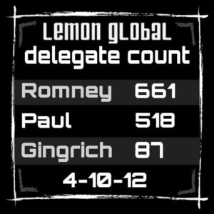 You will see, that Lemon Global, a Ron Paul supporter blog has very different delegate projections. While they are possibly biased in favor of Ron Paul, the blog’s author posts that he has tried to make them as conservative as possible and may actually be underestimating Ron Paul’s delegate count. Here is what he projected the delegate count would be on April 4th, and to the right is his prediction after Santorum’s withdrawal assuming that Santorum delegates are all unbound (which they aren’t) and that they almost all swing towards Ron Paul (which is doubtful).